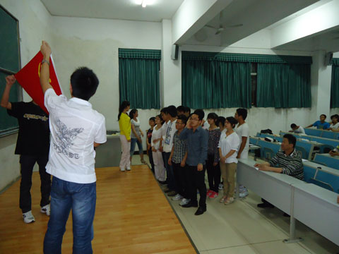 典礼由张晋超主持,首先请全体起立,奏《国际歌》,紧接易政群上台对第26期分党校进行总结及宣布优秀学员名单,并由甘向阳为优秀学员颁奖。之后由杨慧荣宣读上级党委批复文件及新党员名单,接着新党员向党旗宣誓。新党员宣誓完毕以后,宣誓新党员代表及入党积极分子代表分别上台发言。典礼最后甘向阳上台,为典礼作了总结性发言。
