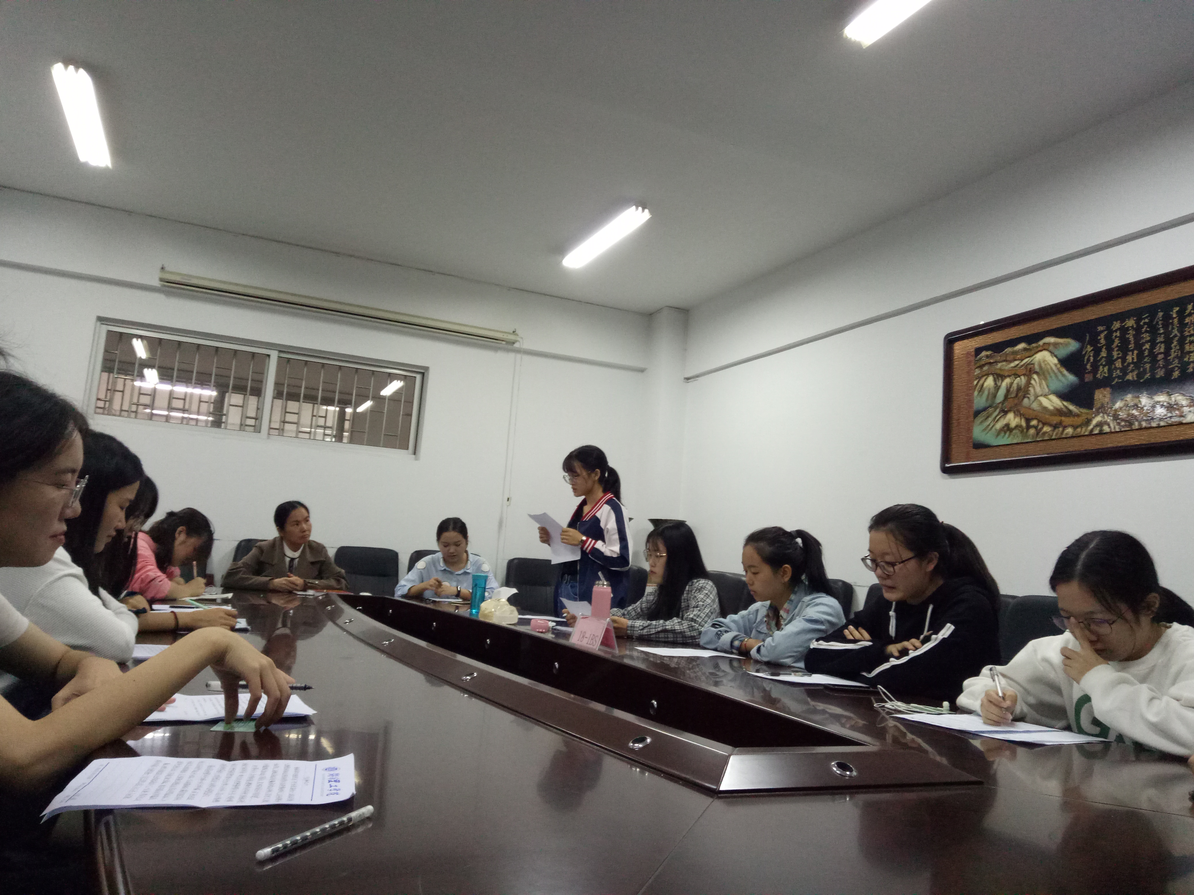 会议开始,由党支部委员李玲知作为主持人介绍本次会议的开展背景,本次会议是就近期习近平总书记在十九大报告中指出,行百里者半九十。中华民族伟大复兴,绝不是轻轻松松、敲锣打鼓就能实现的。全党必须准备付出更为艰巨、更为艰苦的努力。以此次会议就"行百里者半九十"这句话谈谈自己的个人经历和对这句话的个人见解。