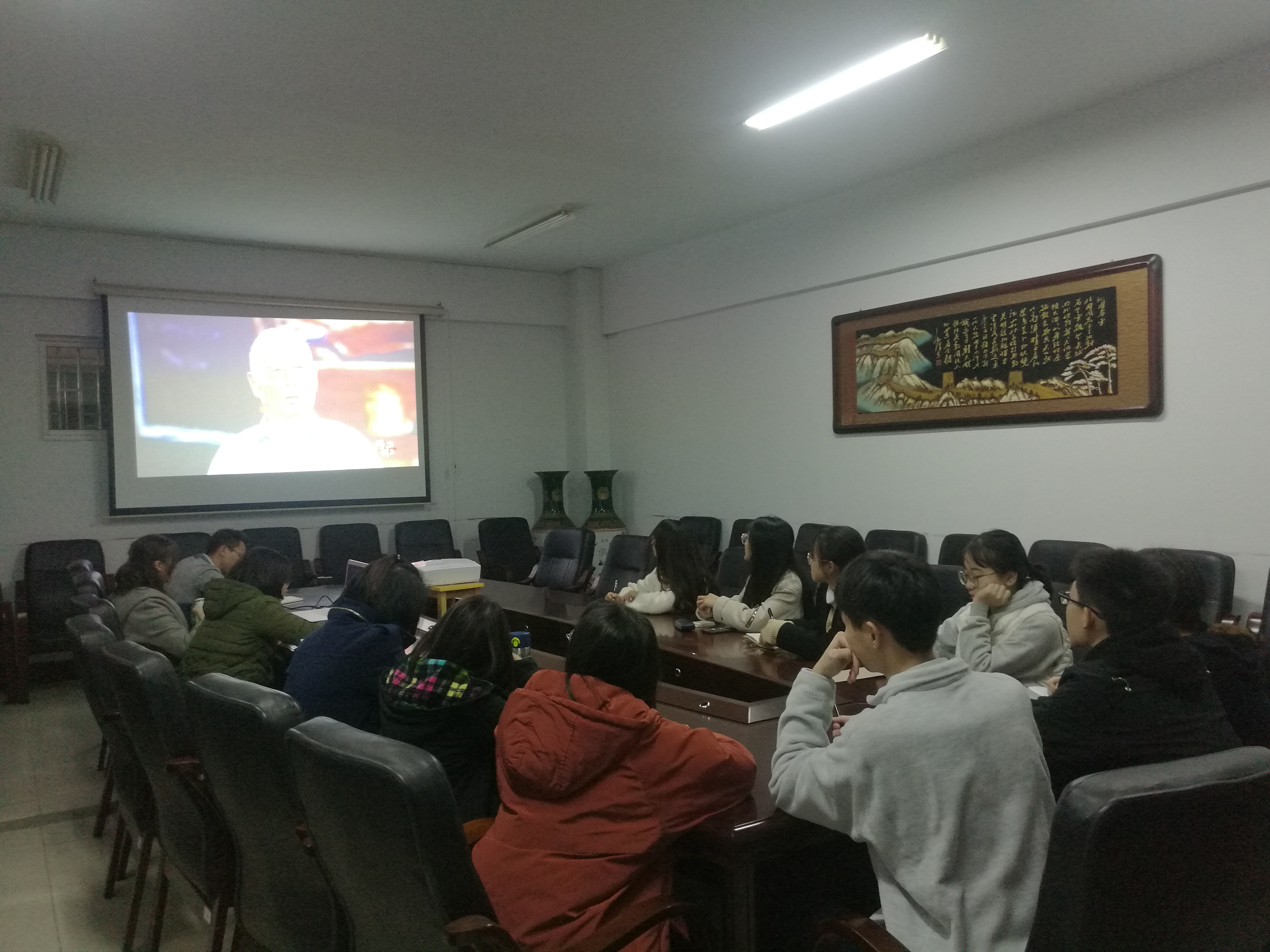 在观看视频过程中,在座党员全神贯注,为视频中的英雄事迹所惊叹、为视频中的优秀党员做出的贡献所感动。视频结束后,党支部全体成员开展学习讨论。党支部书记根据自身情况,进行反思,对自己之前的工作进行总结。并表示希望在往后的生活中,能更加有耐心、尽可能地帮助更多同学。