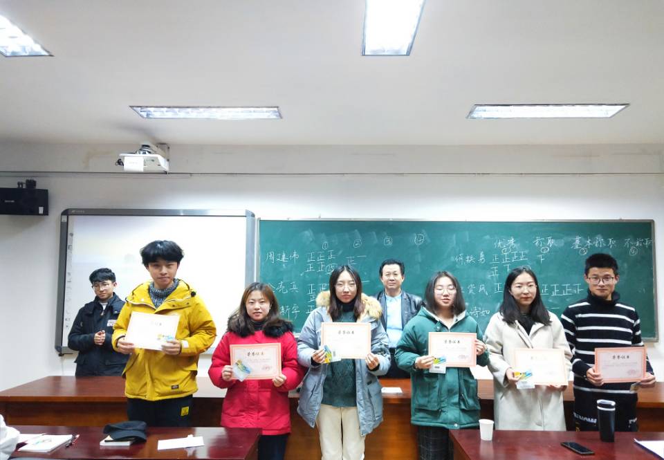 随后与会人员根据述职和日常工作情况,对全体支委进行等级评价。等级分为优秀、称职、基本称职、不称职。根据优秀票数排名,分别获10分、7分、4分、2分、1分。结合日常工作考核得分,选出三名优秀党员干部。活动前,根据日常考核,推荐出6名优秀党建工作人员,并进行了确认。接着,易书记为以上9名同志颁发奖状及奖品。