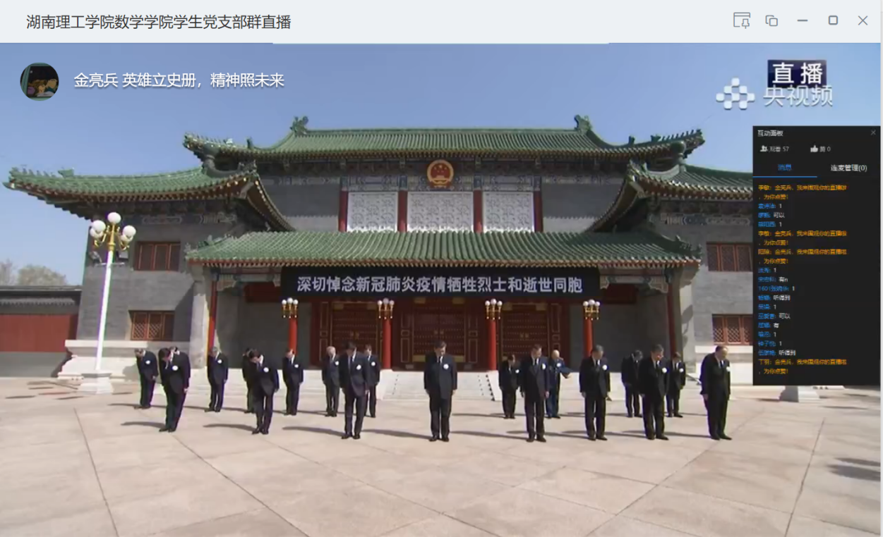 活动开始,全体同志低头肃立,默哀致敬,深切悼念新冠肺炎疫情牺牲烈士和逝世同胞。随后,全体同志集体观看纪念人民英雄的4个视频,分别是《致敬英雄,是他们用生命守护生命》、《致敬疫情英雄,逝者安息!》、《3.30西昌泸山火灾纪实4.1日影像》、《清明祭英烈【呼叫81192,请返航!】》。视频中的抗“疫”英雄、救火战士、飞行员烈士等人民英雄,无一不在用行动证明不怕牺牲、冲锋在前的斗争精神。他们默默付出与守护,保卫人民群众走出寒冬,令中国江河无恙。