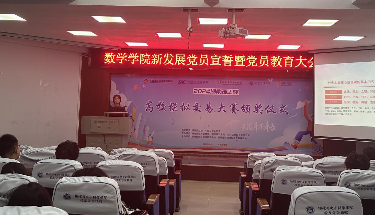 随后,齐亮菲以《社会主义核心价值观》为主题为全体入党积极分子讲党课,她围绕社会主义核心价值观的概念内涵、发展历程、价值意义、基本原则和践行路径这五大方向进行讲解。齐亮菲以现实生活为背景,就学风问题、考风问题进行剖析,鼓励各入党积极分子努力提高学术水平,增强综合素质,践行社会主义核心价值观,争取早日成为一名合格的共产党员。