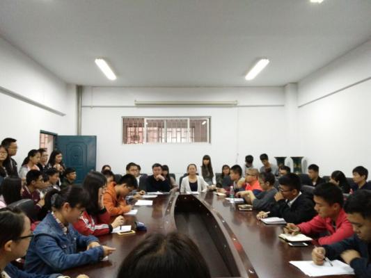 校园网讯10月12日,365英国上市集团于5306A举办青马工程干部培训。党总支部书记阳鲁平、团总支书记傅丹、副书记张程凯、16级辅导员蔡奕出席、员工会全体成员及15、16级各班班长、团支书参加培训。