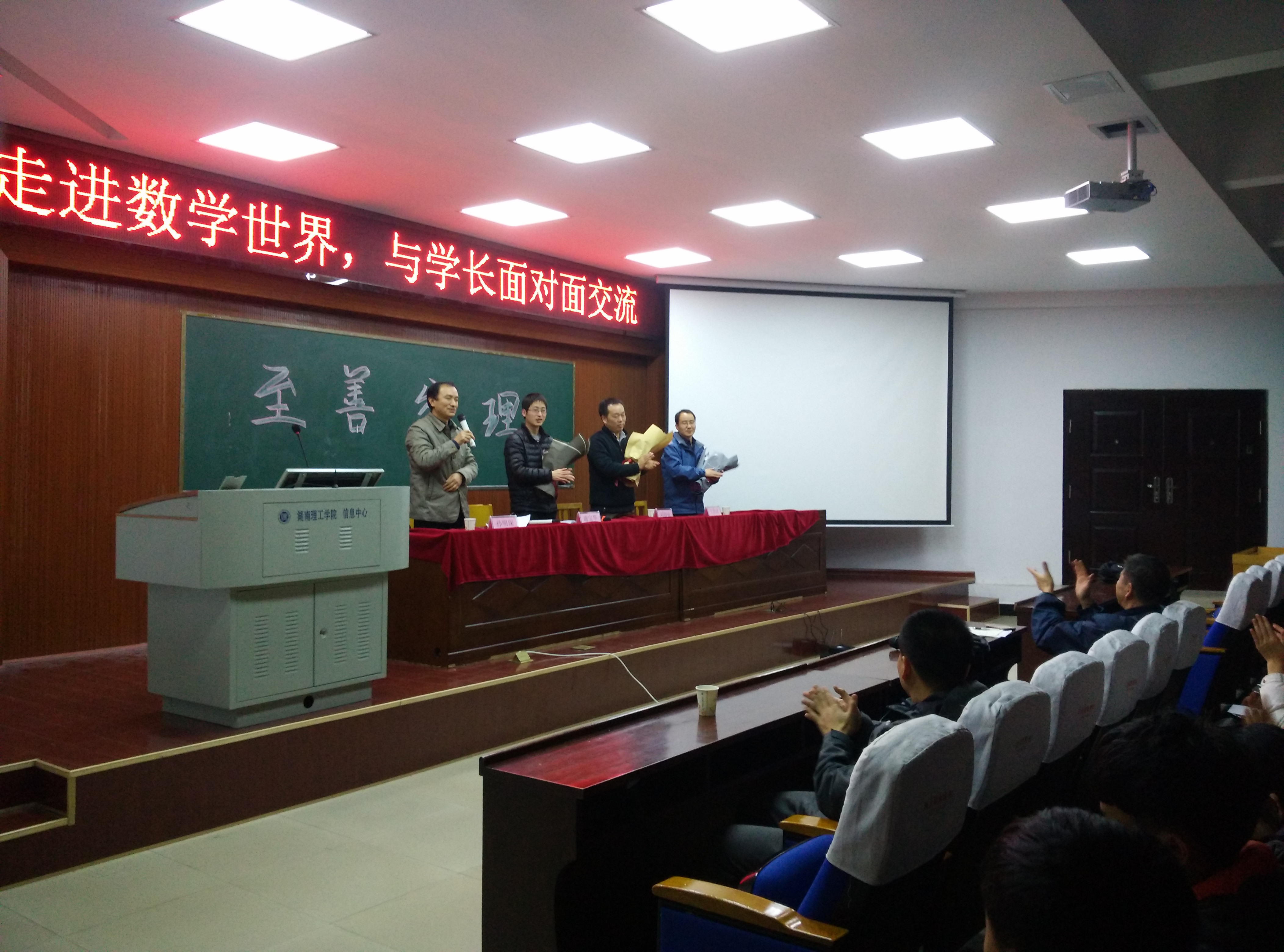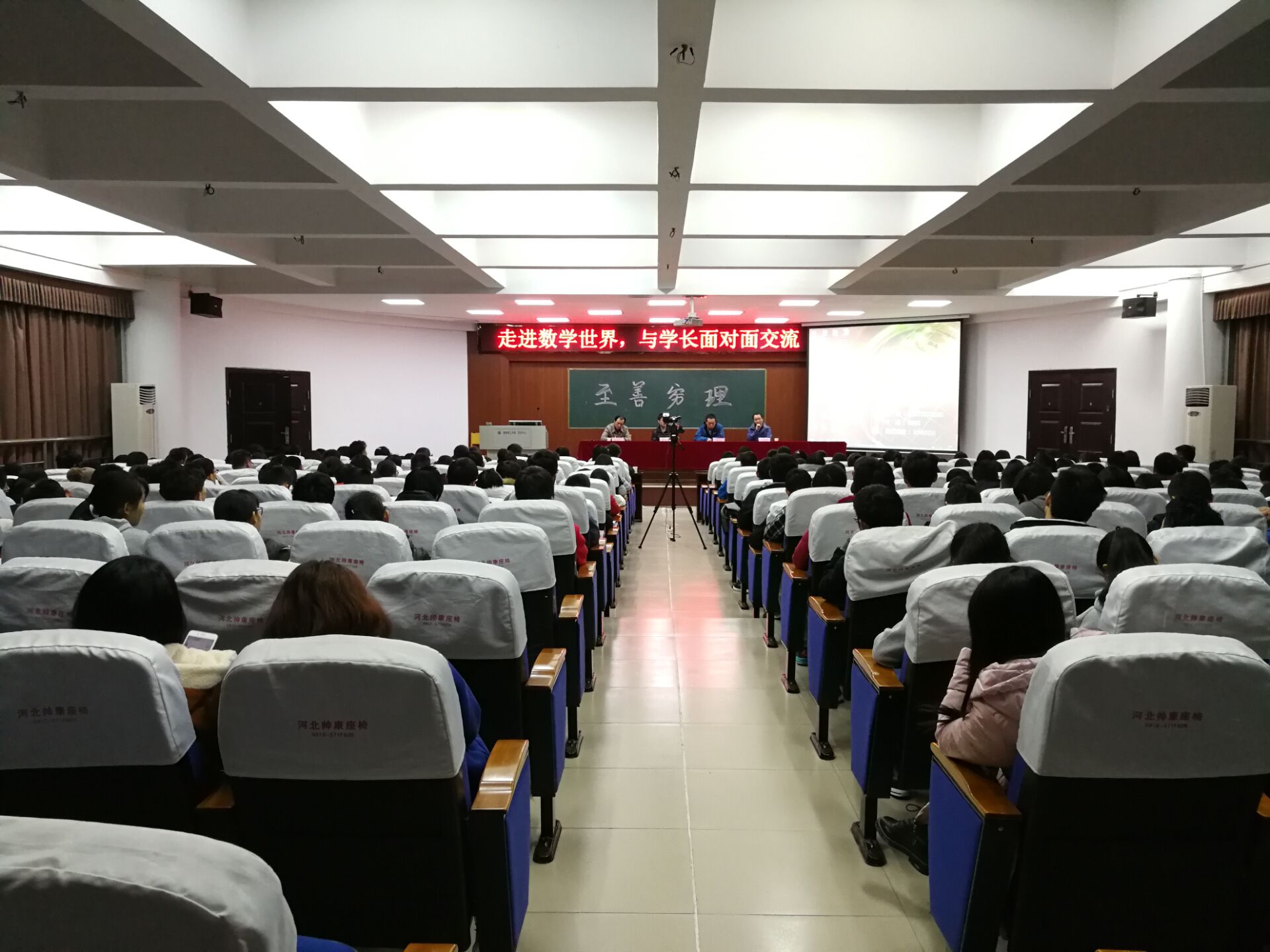 2017年12月1日晚上19点30,2000级优秀员工刘创业,王佳伏,谢宝华于6栋学术报告厅举行“走进数学世界,与学长面对面交流会”主题讲座。365英国上市集团经理孙明保,党总支书记阳鲁平出席,2017级全体员工参加讲座。