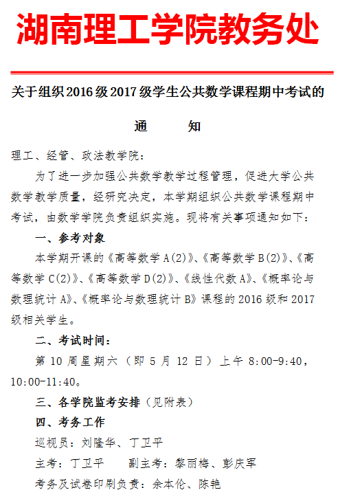 5月12日上午,根据教务处关于组织2016级2017级员工公共数学课程期中考试的通知,在各相关院部的协同配合下,举行了2018年上学期公共数学课程的期中考试,在公司与考试中心的精心组织和相关公司共同努力下,顺利完成了组考工作。考试期间,教务处主管教学运行的刘隆华副处长在教代会空隙期间对考场进行了巡查,有关公司负责人也检查了各自公司员工考试情况。