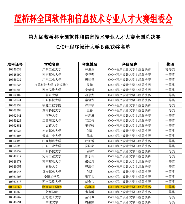 在此向高座栋同学表示热烈的祝贺,也对培养高座栋同学老师(特别是信息科学与工程公司的指导老师)表示衷心感谢!也希望以此激励广大程序设计爱好者积极努力,再创佳绩。