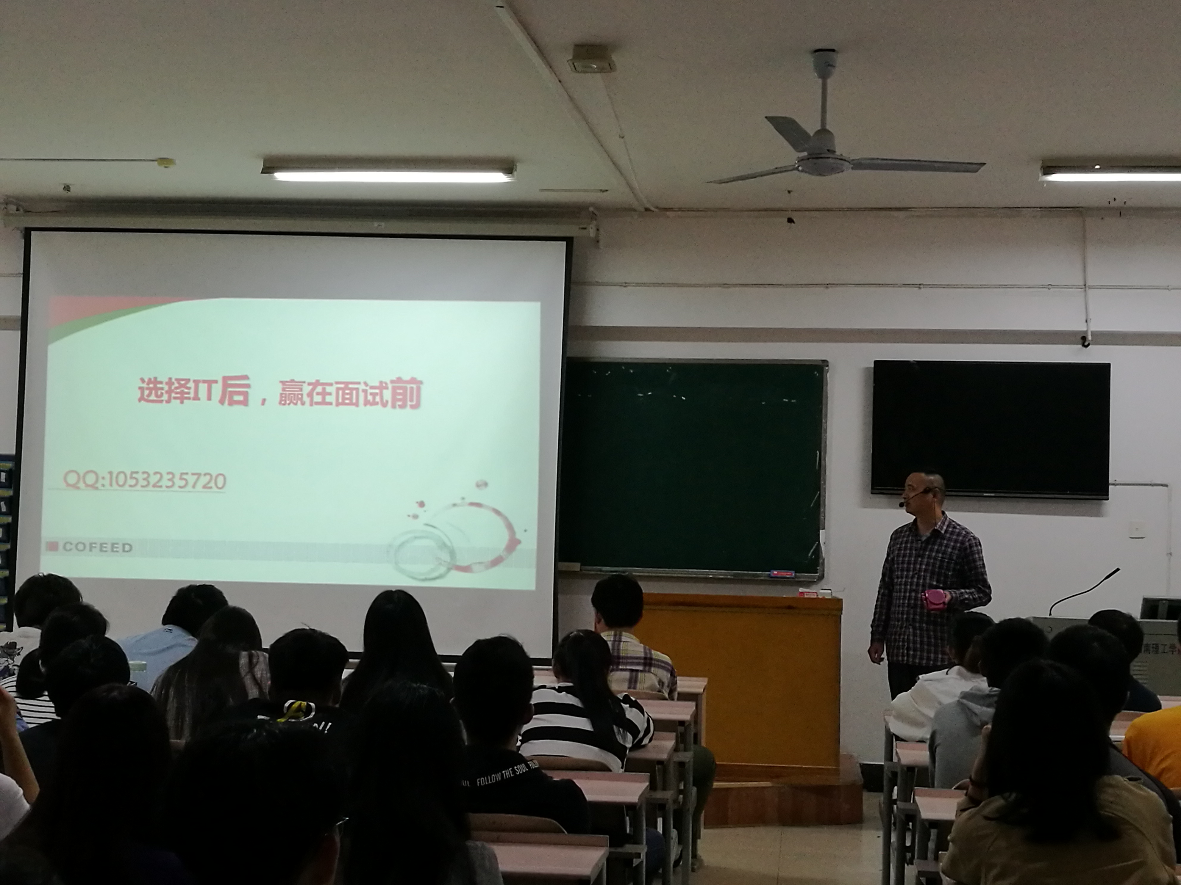 (3) 岳阳沃克IT教育公司董事长彭拥军为17级同学做有关专业发展方向的辅导讲座。