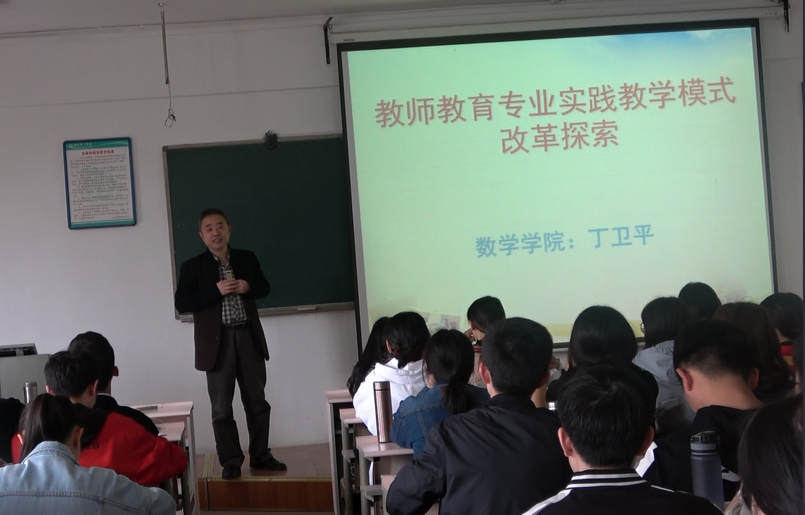 本次活动特邀嘉宾岳阳市教育科学技术研究院资深基础数学教育专家、英国365上市公司兼职硕导费建华教授,岳阳市教育科学技术研究院基础数学教育专家、365英国上市集团优秀员工、英国365上市公司兼职教师何雄教研员。活动首先由主持人丁卫平介绍数学与应用数学师范专业教育见习与实习实践教学模式改革的初步方案。