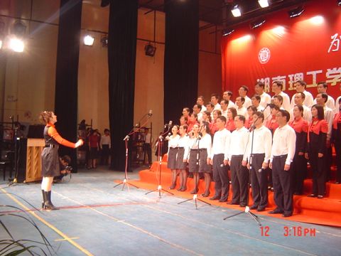 为庆祝改革开放30周年,11月11日下午2:30,数学系参加了由公司在东院演播厅举行教职工“为中国喝彩”歌咏比赛。全院共24个组织或单位参加了此次比赛。其中数学系37名老师以一首《明天会更好》闪亮登场,系党总支副书记李丽荣老师担任指挥。