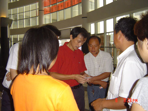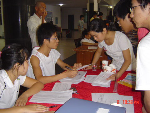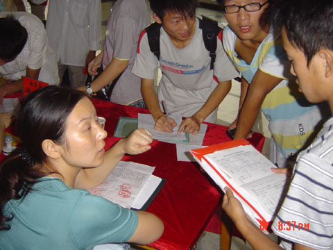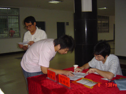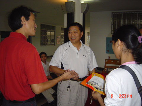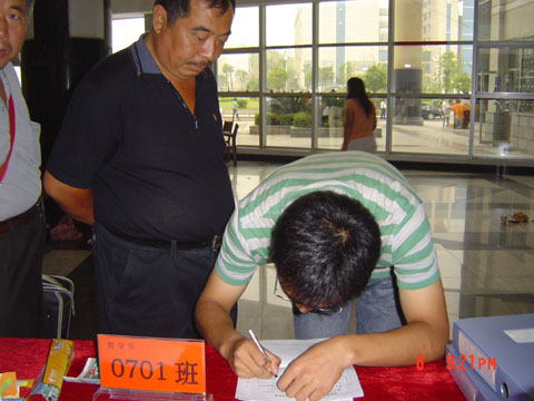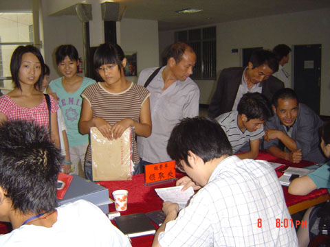 李书记认真审阅员工资料,为新生解答疑难