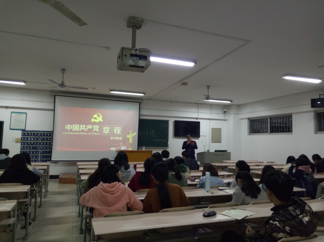 为了让入党积极分子更加透彻地学习党章,何帆老师解读了党章的总纲,介绍了党的性质、行动指南、主要成就和新时期的历史任务、社会主义初级阶段基本情况、新世纪新阶段的战略目标等,并且解读了党章的条文。