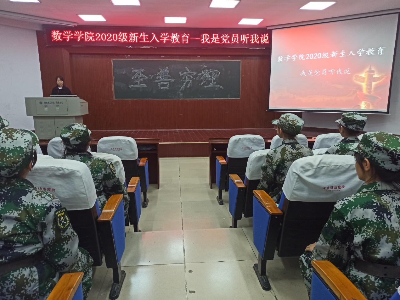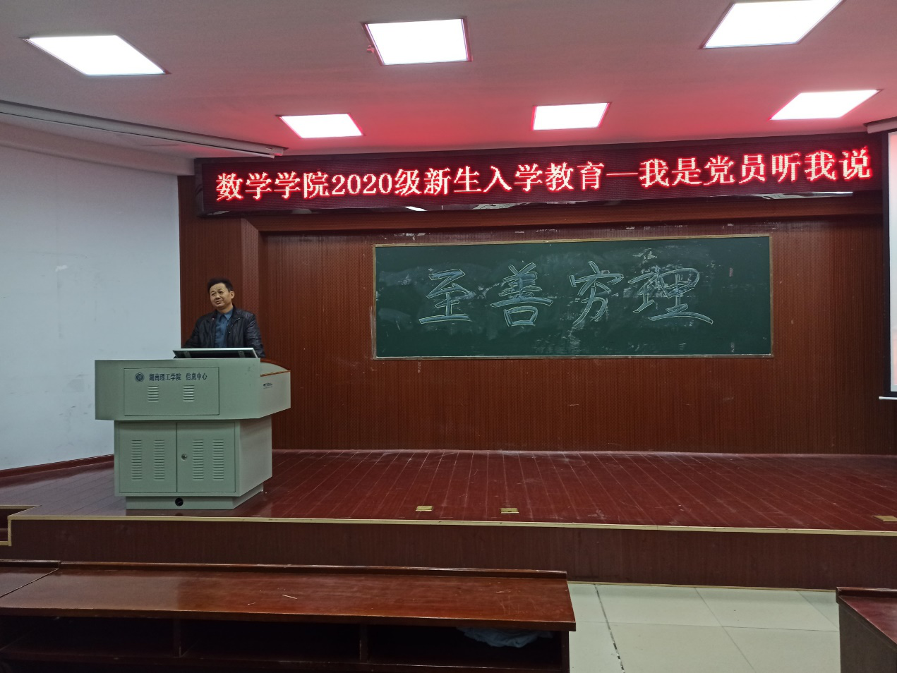 本站讯 10月8日晚七点,2020级新生入学教育—我是党员听我说的主题会议在六栋一楼学术报告厅顺利举行。公司党委副书记易政群、党支部书记徐笑天出席会议。