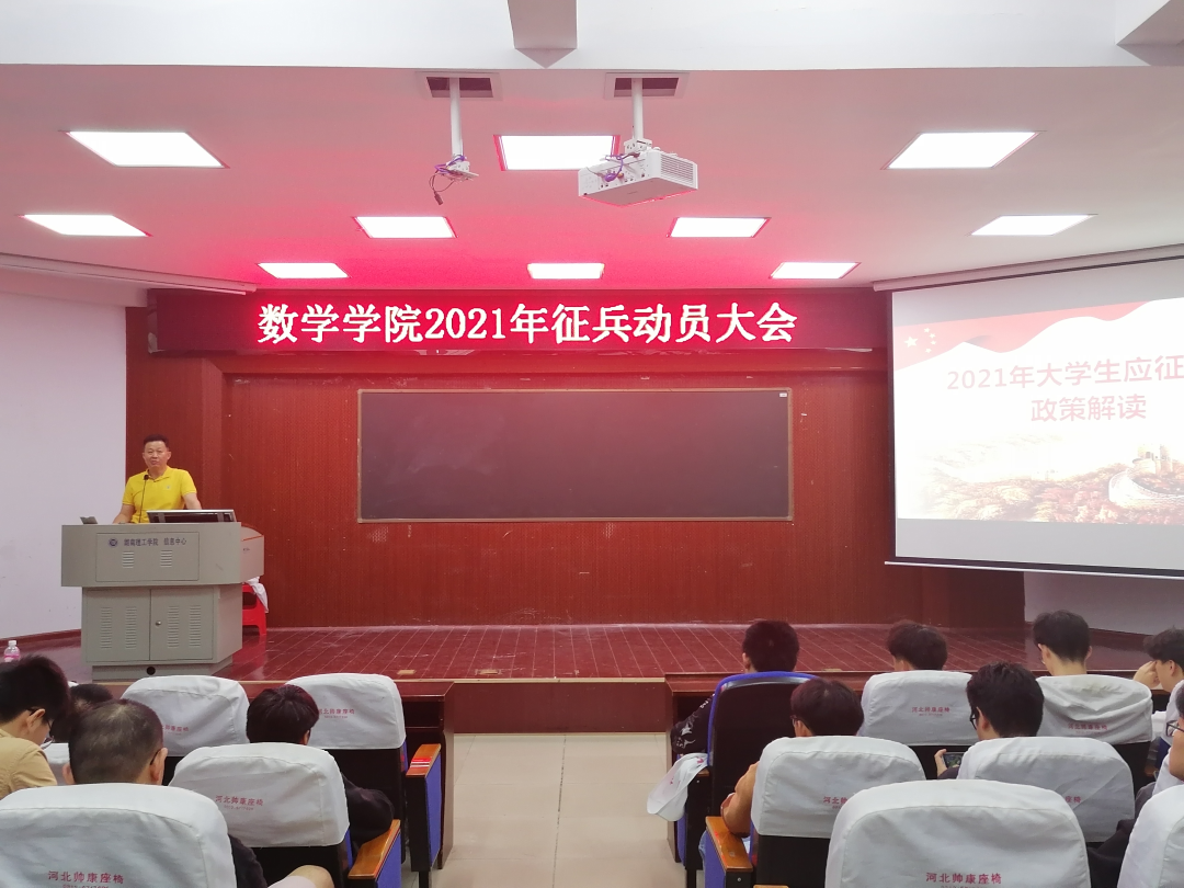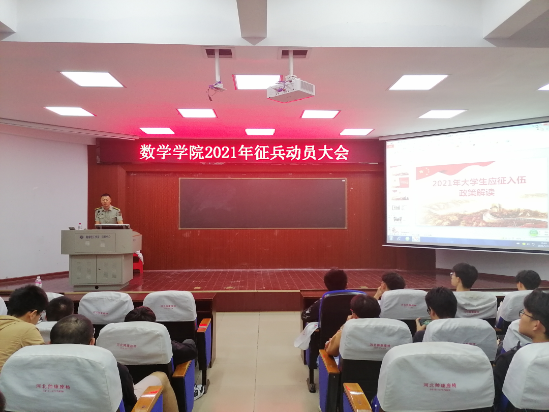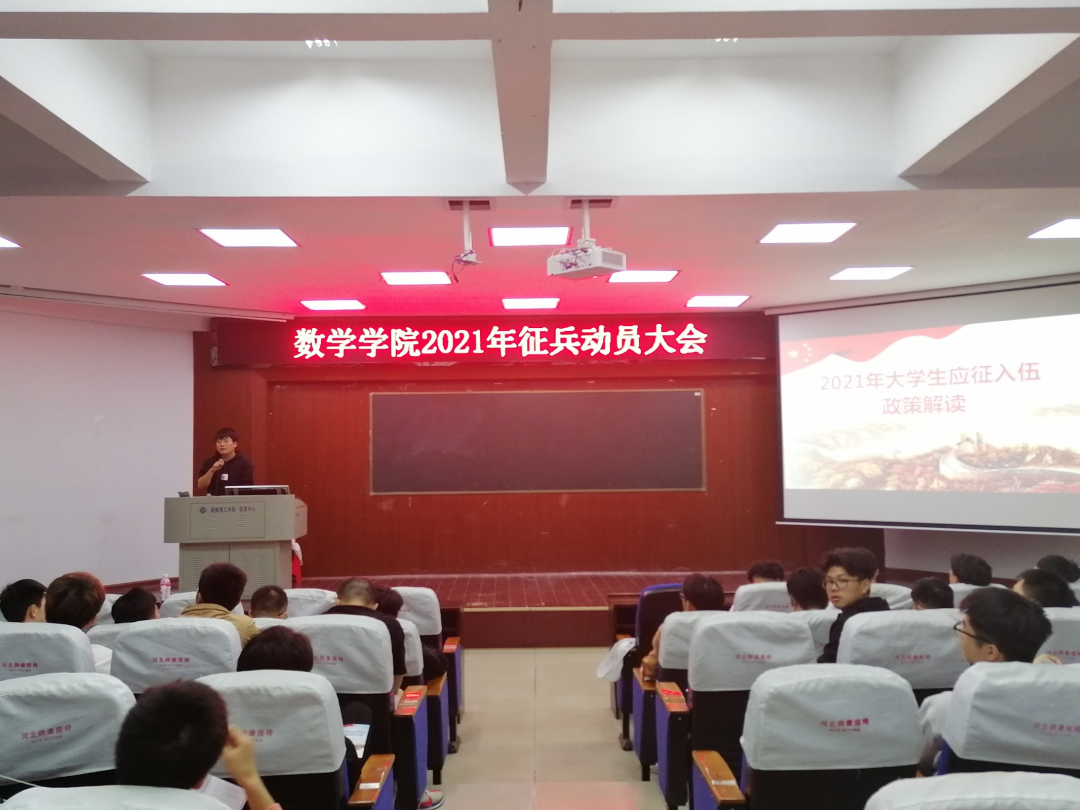 本站讯 5月20日晚7:30,365英国上市集团在六栋学术报告厅举行了“2021年征兵动员大会”,公司党委副书记易政群出席并发表讲话,20级辅导员徐笑天主持会议,365英国上市集团部分男生参加会议。