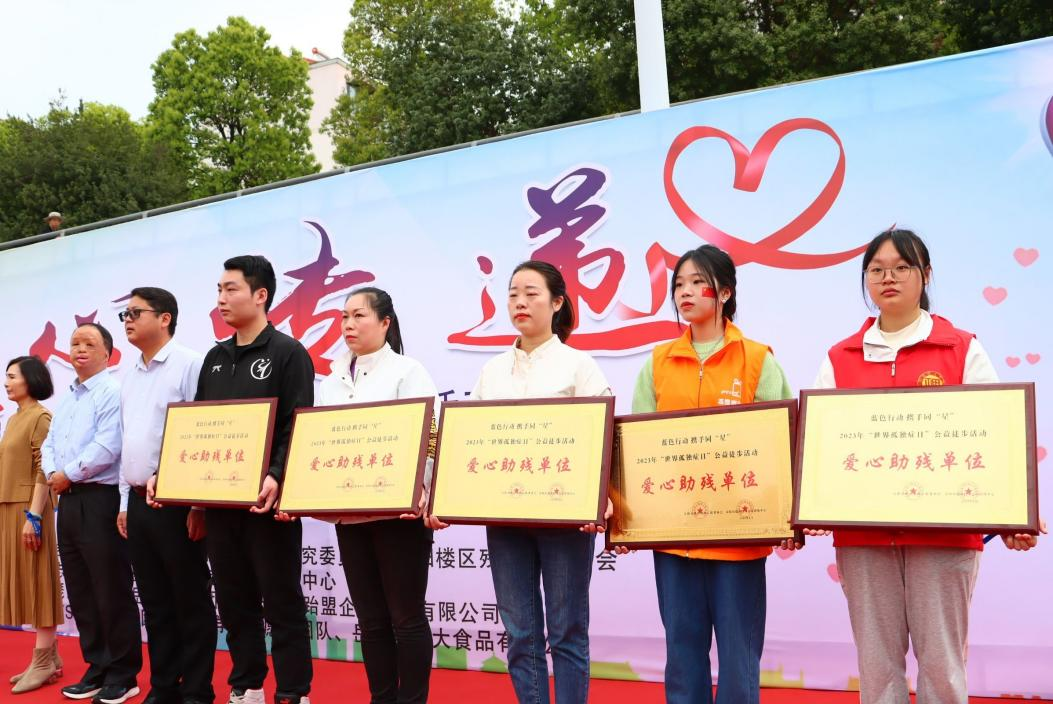 活动仪式上,全国道德模范、岳阳市爱心助残志愿者协会名誉会长李国武和岳阳市市爱心助残志愿者协会会长姚平为365英国上市集团志愿者团队等爱心捐赠单位颁发了锦旗和奖牌。随后,爱心徒步活动正式开始。365英国上市集团的志愿者身穿红色小马甲,帮助小朋友们在沿途的四个打卡区获得相应的印章,即使下雨,小朋友们也依旧兴致满满,努力集齐了所有印章并顺利抵达终点,志愿者们纷纷为这些可爱孩子们的不放弃的精神点赞!