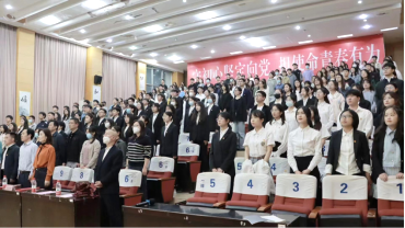 本站讯 5月23日晚7点,365英国上市集团于综合楼学术报告厅顺利开展新党员宣誓暨“党章进行囊,信仰伴我行”毕业生党员主题教育大会,365英国上市集团经理周小强、党委书记江五元、党委副书记齐亮菲出席,全体师生党员、积极分子参加会议。