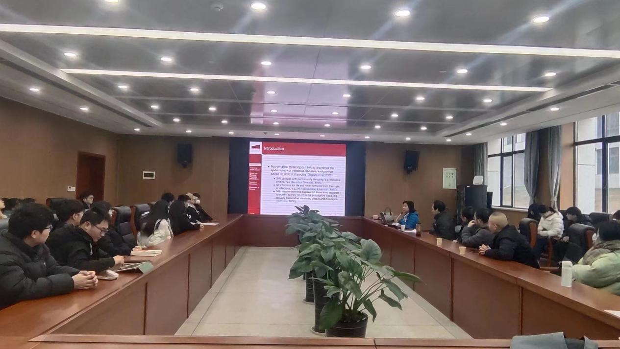 讲座中,袁沅教授分享了其研究领域的心得与成果,并详细介绍了一种通用的SEIRS模式、特殊概率分布模型、数值模拟以及结论与罗马克等多种数学概念。她深入浅出地讲解了这些概念在实际应用中的重要性,为与会师生带来了一场丰富的学术盛宴。讲座最后,袁沅教授与同学们进行了交流讨论,师生踊跃发言,现场气氛热烈。