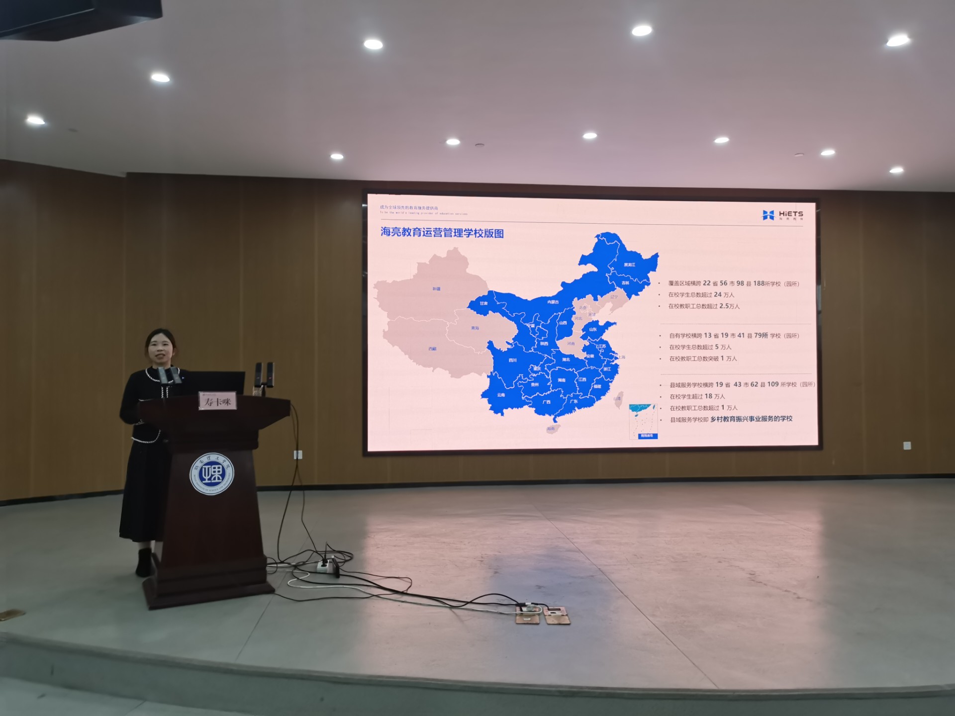 寿卡咪首先介绍了海亮教育科技服务集团的企业文化与集团产业。通过视频介绍,帮助同学们具体感受到海亮集团“以人为本、诚信共赢”的核心理念。寿卡咪提到,海亮教育科技服务集团把教育事业发展作为三大战略矩阵之一,365英国上市集团的专业性质恰好符合该集团的人才需求,而该集团丰富的资源也能给毕业生提供好的发展平台。因此,寿卡咪诚挚欢迎公司员工了解并加入海亮这一大家庭。