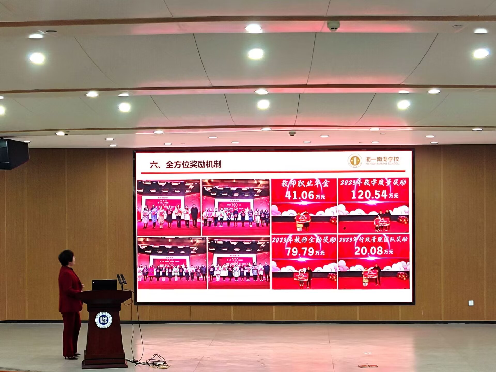胡艳红从公司荣誉、团队队伍、教学质量等角度详细介绍了湘一南湖公司的各项优势,她强调,湘一南湖公司注重教师的专业成长和个人发展,为教师提供了广阔的职业发展空间和良好的薪资待遇。在互动环节,与会员工纷纷就教师职称评定、学科课时量、奖励机制等方面提出了自己的疑问。胡艳红结合湘一公司的实际情况和未来规划,为员工们提供了详实的解答。整场招聘会气氛热烈。