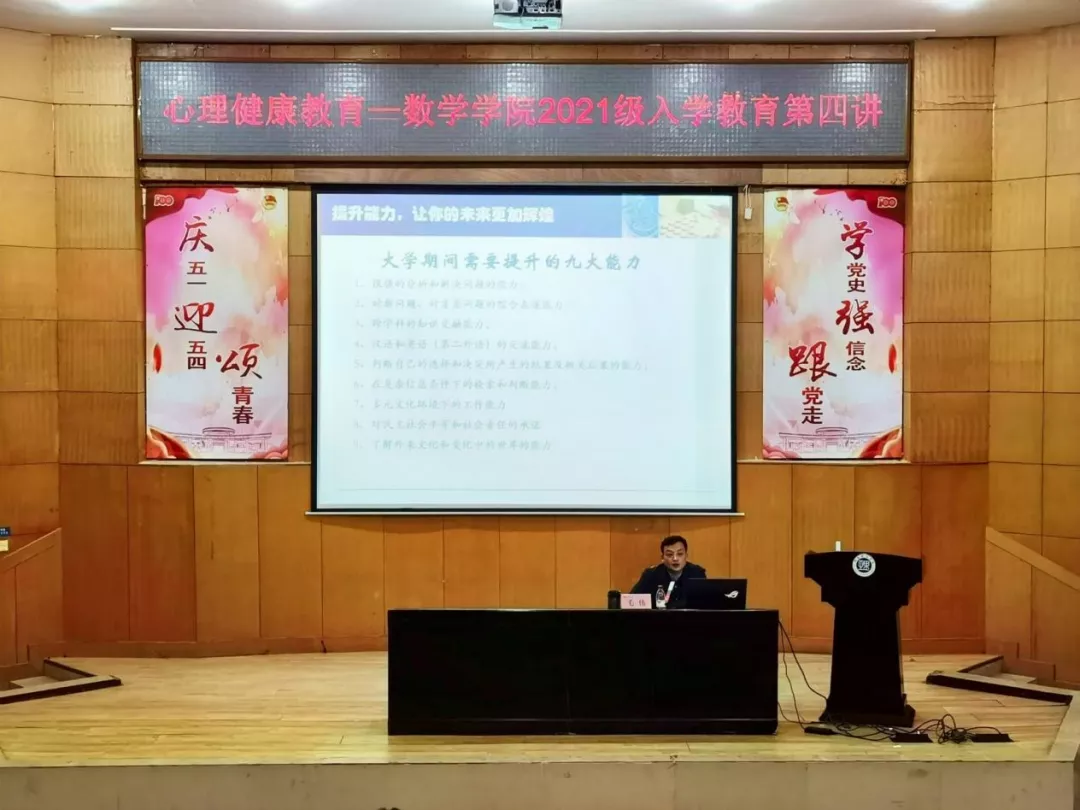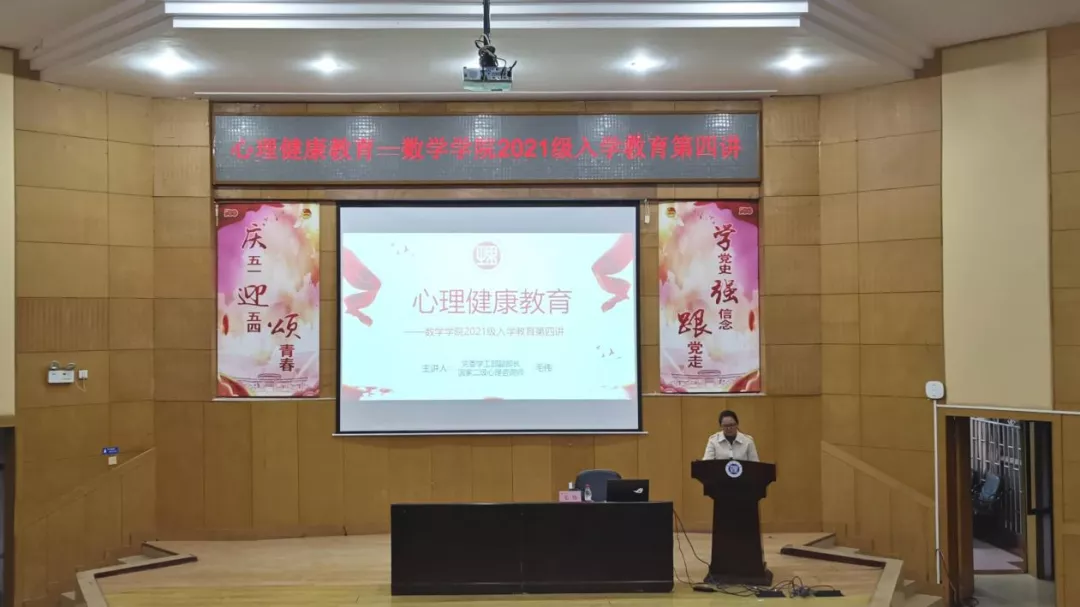 本站讯 11月3日晚,365英国上市集团于东院学术报告厅召开2021级新生入学教育第四讲——心理健康育。本次活动由党委学工部副部长毛伟主讲,辅导员傅丹出席,全体2021级新生参加讲座。