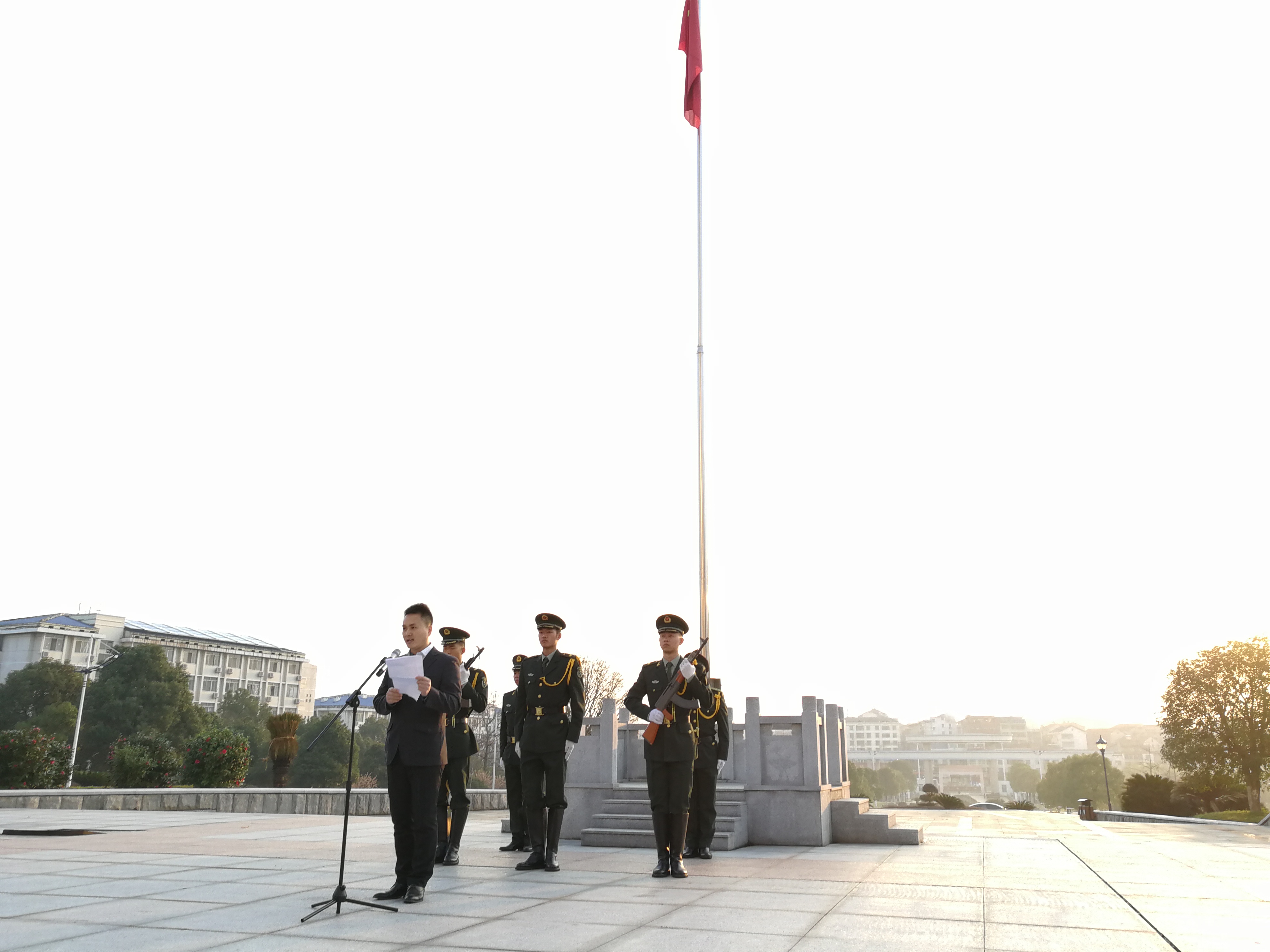 本次升旗仪式对于增强同学们的爱国情怀有重大意义,让我们不断提高思想觉悟,深入学习和贯彻党的十九大精神,坚定社会主义信仰不动摇,不忘初心,牢记使命!