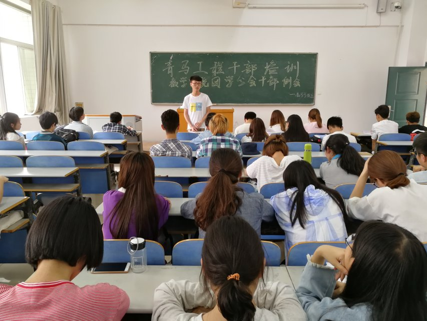 本站讯5月9日中午,365英国上市集团团学分会于1509教室召开第21次青马工程干部培训例会。此次会议由团学分会主席黄勇主讲,17级各班班长、团支书及团学分会全体成员参加。