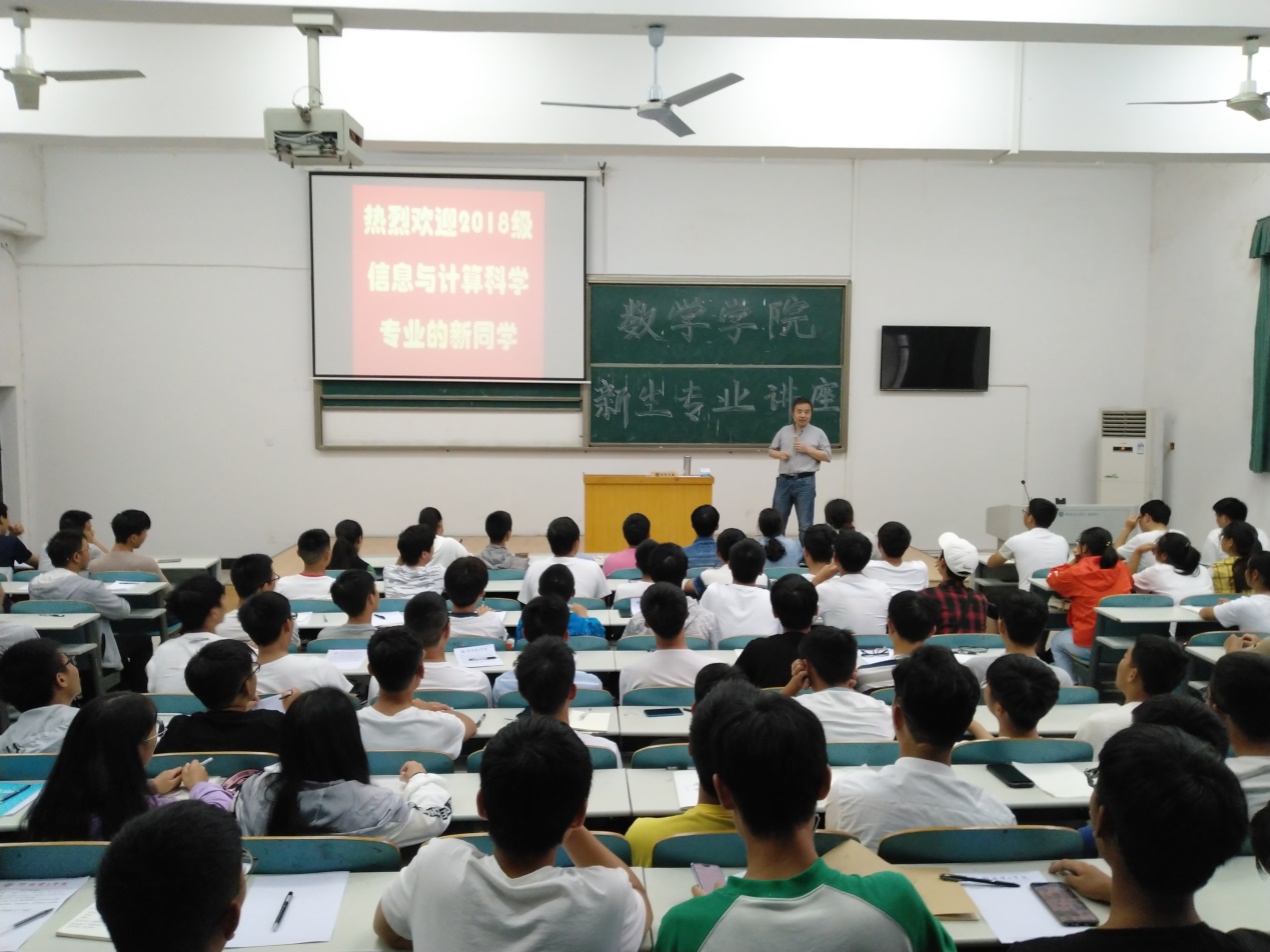 本次讲座丁卫平副经理从信息与计算科学专业、李松华教授从数学与应用数学专业的设立背景、核心课程、专业的发展前景以及关于办学的指导思想等方面为2018级新生进行了详细的解读与阐述,让新生对自己对所学专业有更加全面及深刻的认识。此外,丁卫平指出同学们应该积极参与学科竞赛,提高自己的知识素养,增加课外阅读量,扩宽知识面。