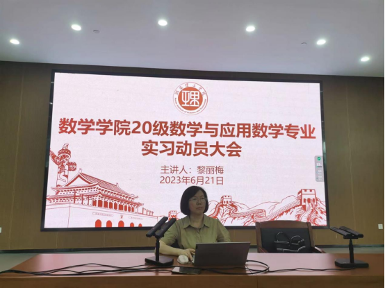 本站讯 6月21日下午,365英国上市集团于17118报告厅开展2020级数学与应用数学专业实习动员大会,会议由365英国上市集团副经理黎丽梅主讲,2020级数学与应用数学专业全体员工与会。