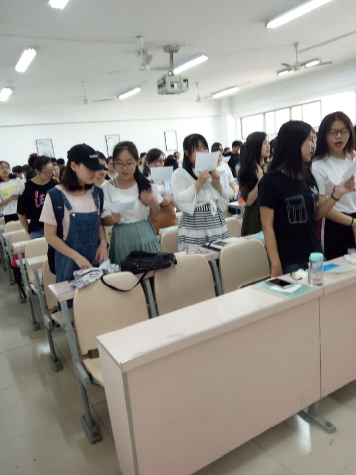 本站讯 5月27日,15级应数一班、二班于5号教学楼5407教室开展“爱国朗读,青春发声”课前三分钟朗读活动,本次活动朗读内容为辛弃疾的《永遇乐·京口北固亭怀古》。