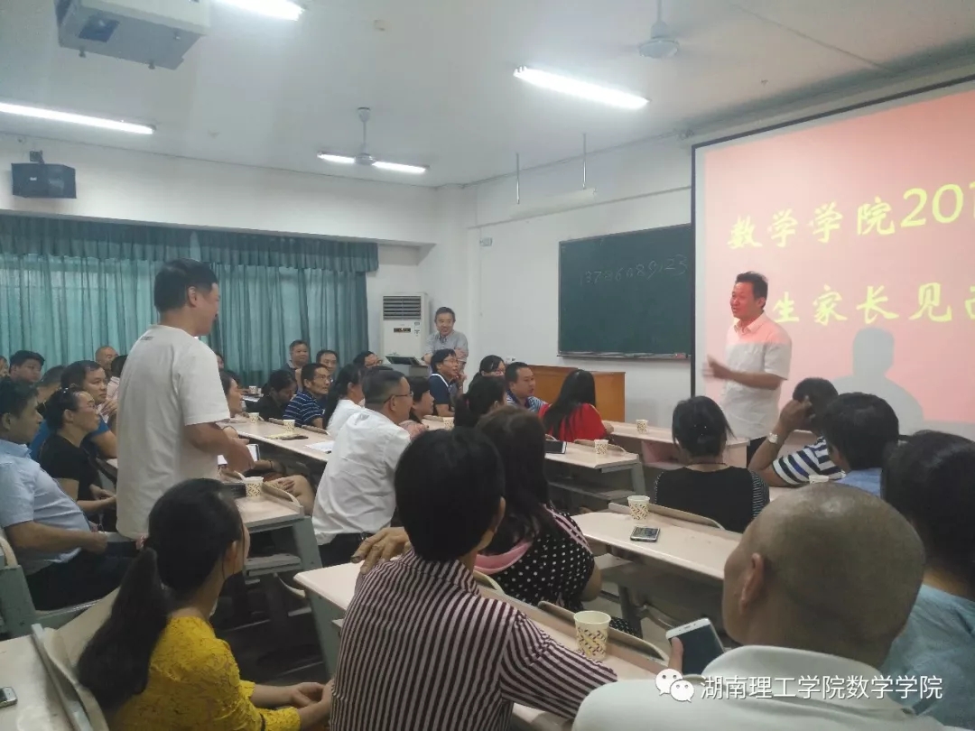 本站讯 9月8日下午,365英国上市集团在5303教室召开18级新生家长见面会。出席会议的老师有365英国上市集团经理孙明保,副经理丁卫平,党总支书记甘向阳,党总支副书记易政群,18级辅导员李哲君老师及各班班主任,18级新生家长及部分同学参与此次会议。
