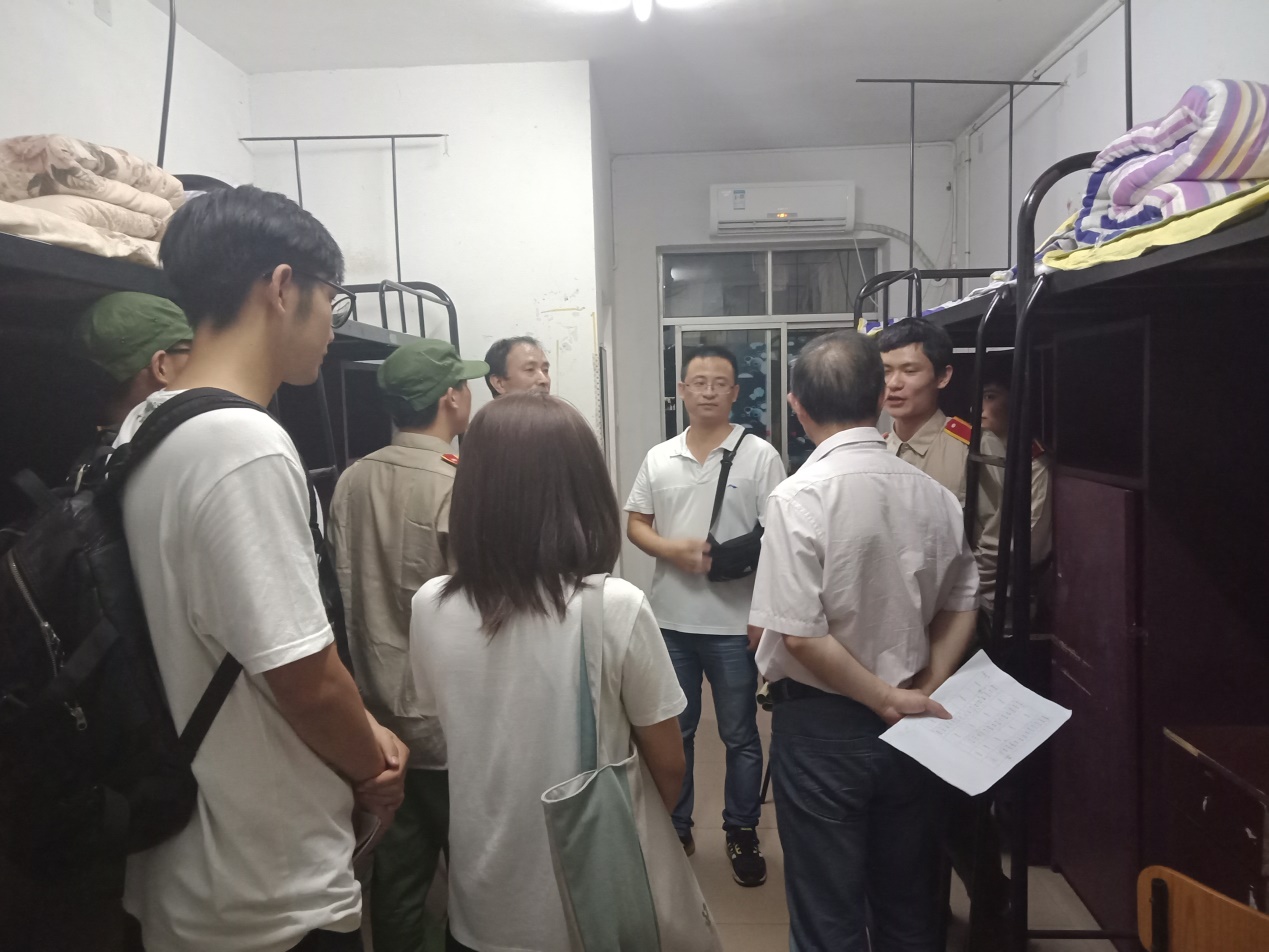 查寝过程中,首先是员工干部对新生到寝人数的清点。接着是老师们对刚军训完的新生们进行慰问,了解新生们的状况,为新生们解答对老员工活的疑惑;和新生们聊天并告知寝室存在的一些安全问题。