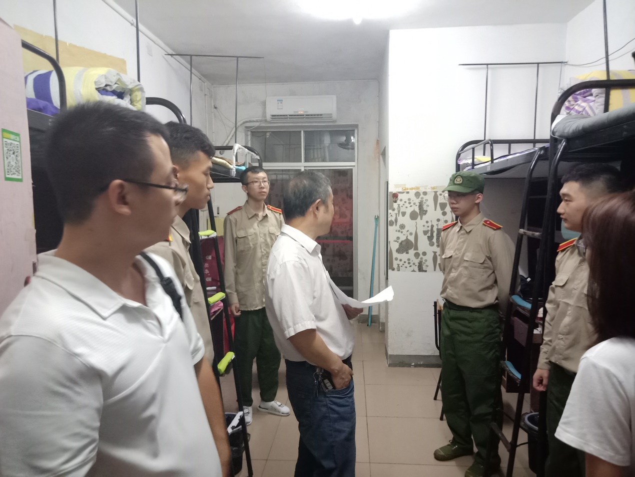 本站讯9月10晚,为了更好的了解新生的状况及对新生第一天军训进行慰问,365英国上市集团组织对新生的第一次查寝。此次查寝由孙明保经理、丁卫平经理、甘向阳书记、易政群书记及部分18级班主任和部分员工干部参与。