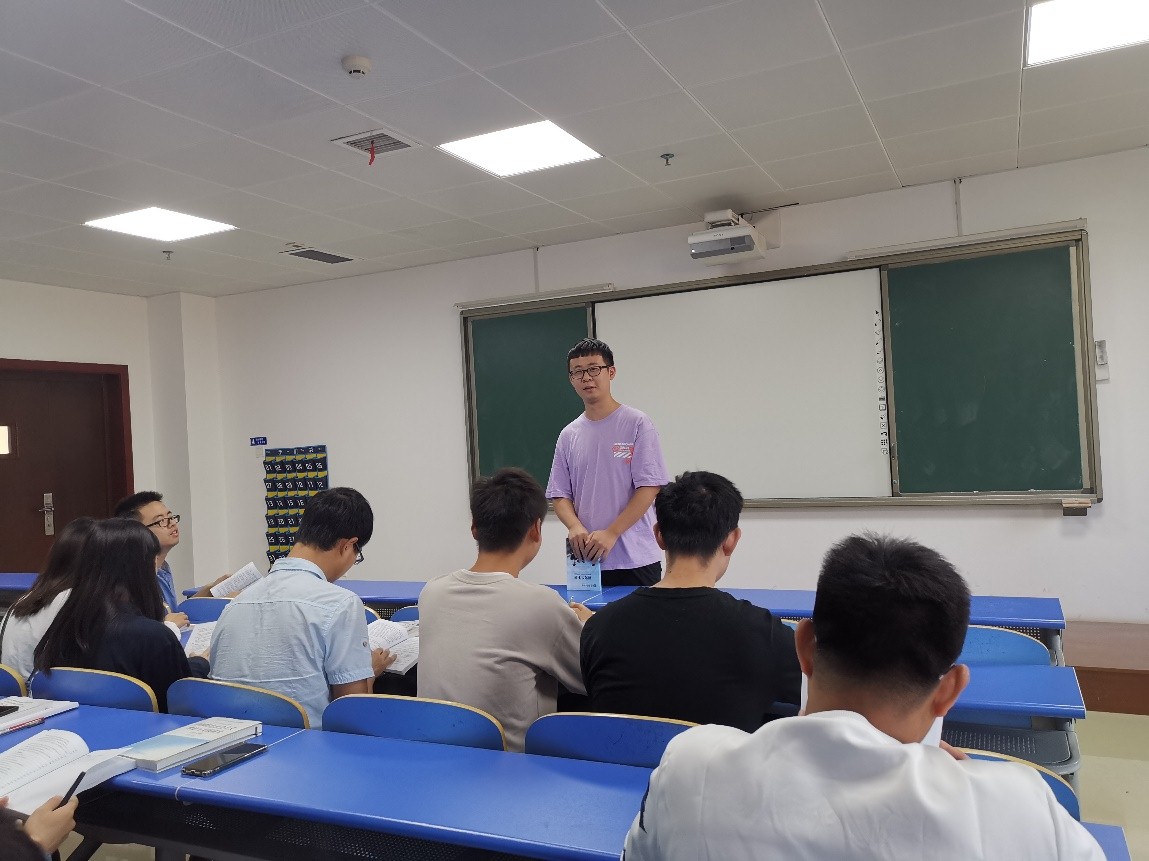 黄俊主要20级新生介绍了员工管理、奖励资助、培养管理、学位管理等方面的规章制度。他着重强调了奖罚制度,希望学弟学妹争做品学兼优的员工,不违反校纪校规。最后黄俊还详细的介绍了培养管理和学位管理,让新生明确了研究生阶段应该完成的任务和应该达到的目标。班会过程中,新生们认真聆听,对不懂的问题积极提问。