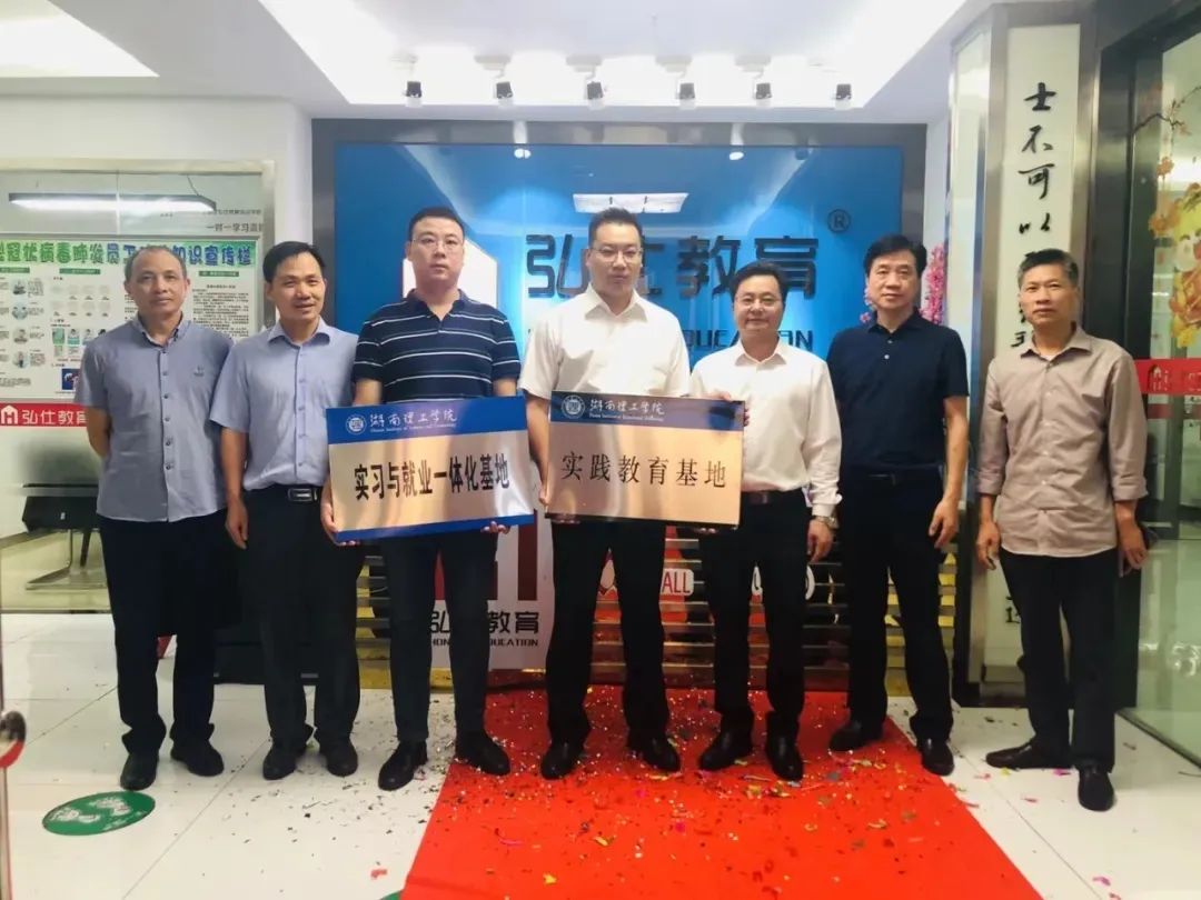 双方领导致辞结束后,英国365上市公司副董事长汤小红、弘仕教育集团董事长欧阳植超对此次实践教育基地、实习与就业一体化基地合作进行了签约授牌仪式。