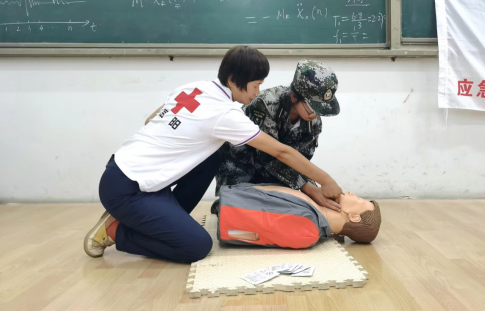 讲座中,志愿者们向同学们介绍了一些突发状况的处理方法,如怎样处理异物入喉、溺水、骨骼受伤等情况。此外,他们还演示了几种常用的应急救护包扎方式。同学们热情高涨,积极举手回答提问,协助志愿者做示范。志愿者重点演示了心脏复苏的全部步骤,同学们认真倾听,踊跃上台,在志愿者的指导下,利用模型学习心脏复苏救治手法。