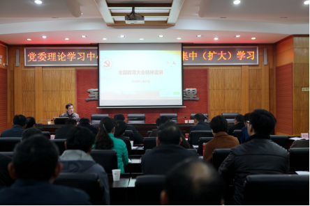 会议要求,深入学习贯彻习近平总书记重要讲话和全国教育大会精神,是当前和今后一段时期全校上下的一项重要政治任务和头等大事。要围绕习近平总书记全国教育大会重要讲话这一纲领性文献,面向全校师生员工,着力宣讲习近平总书记关于教育的重要论述精神,推动全校师生准确理解把握新时代中国特色社会主义理论体系的科学内涵和精神实质,以之更好地武装头脑、指导实践、推动工作,切实把全国教育大会精神讲全、讲准、讲透。各二级党组织要围绕习近平总书记重要讲话和大会精神,结合当前公司“创大申博”、学科调整、专业优化等实际,集中开展学习,有效促进工作。各基层党支部要以宣讲全国教育大会精神为主题,开展一次主题党日活动,推动全国教育大会精神在师生员工中往心里走、往实里走。