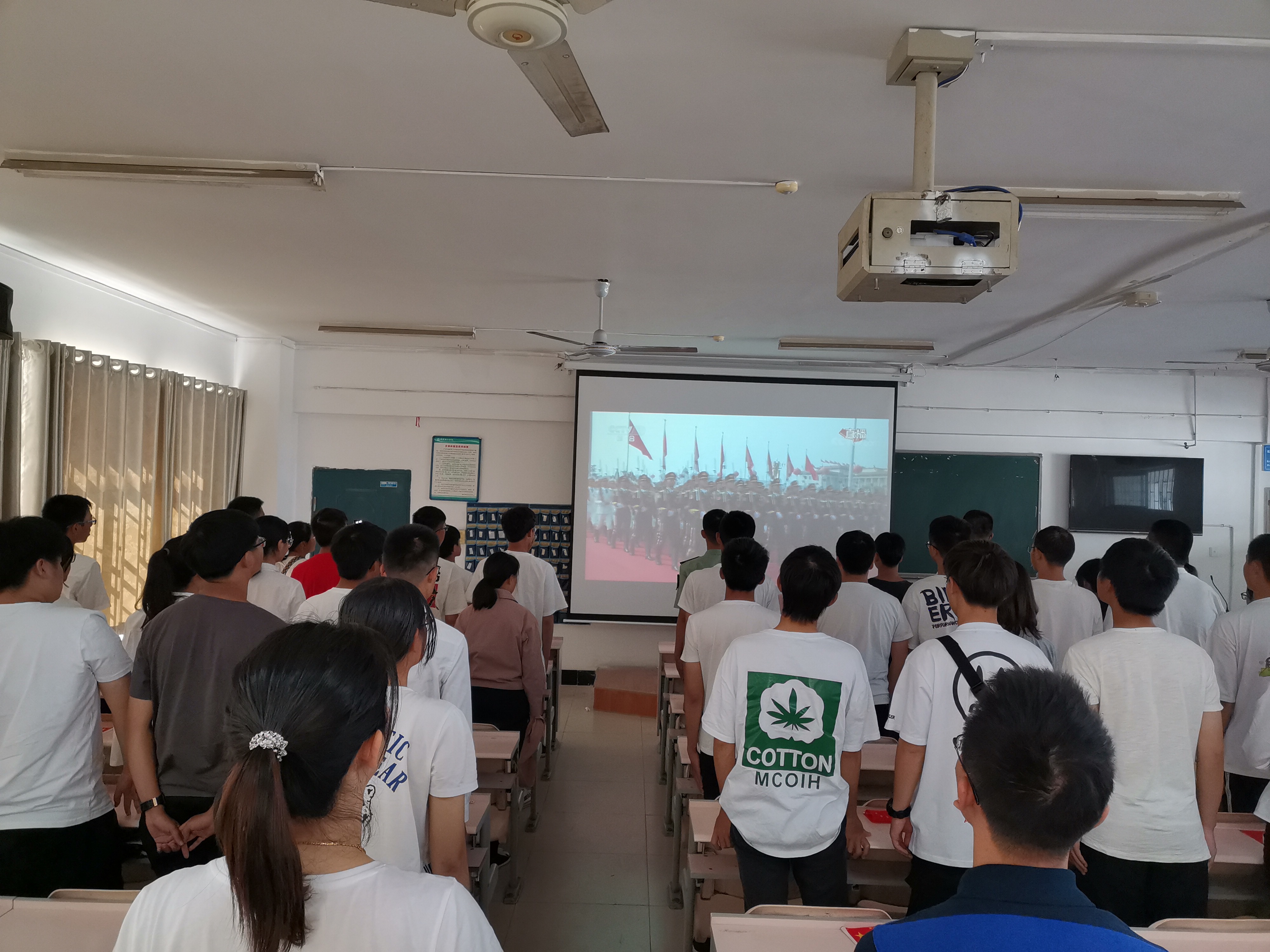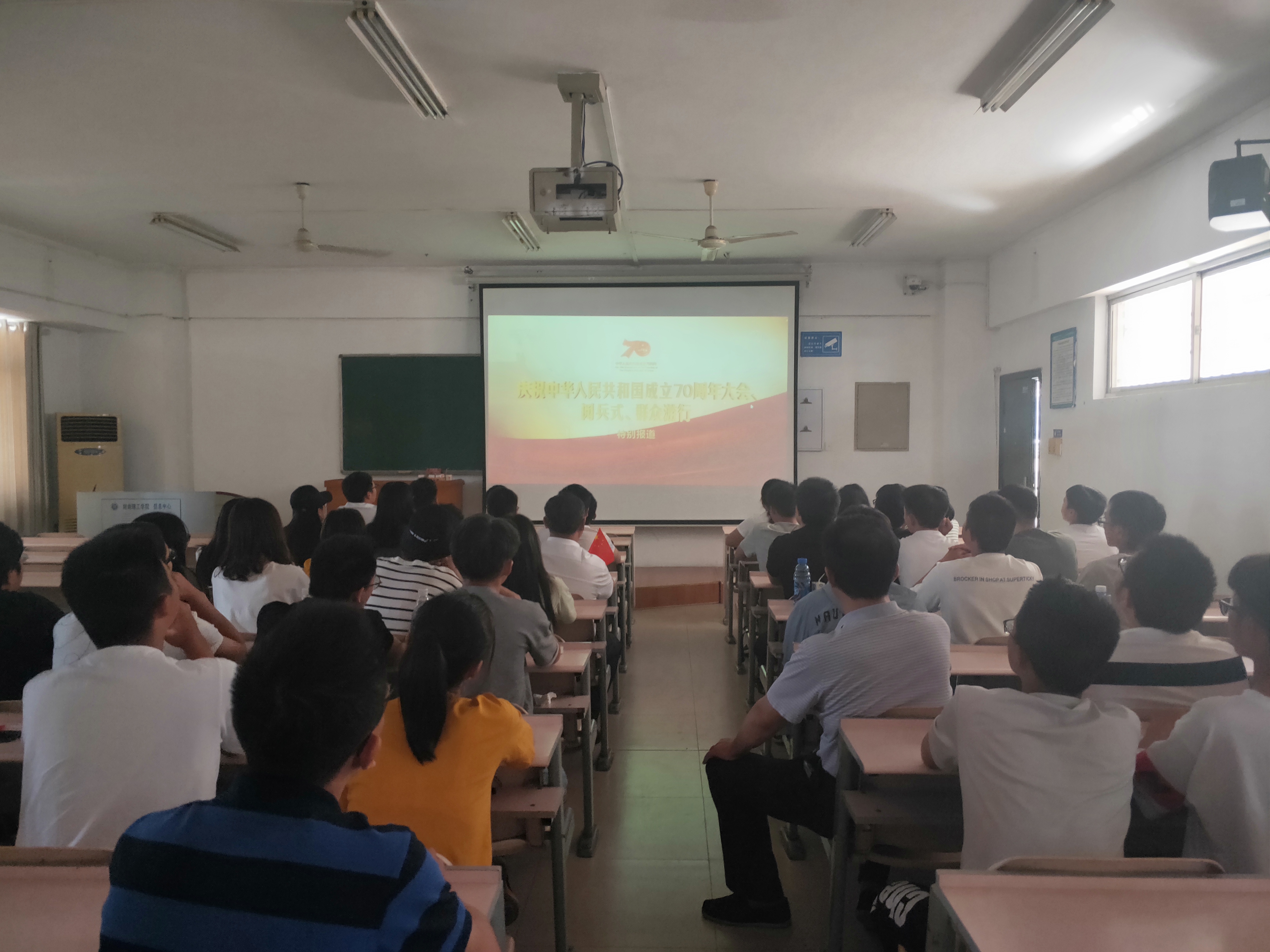 2019年10月1日上午9:30于5408、5411,公司党总支组织观看“庆祝中华人民共和国成立70周年大会暨阅兵式”现场直播。公司总会计师汤福球老师,公司党总支相关负责人出席活动。公司员工党员、入党积极分子和留校员工参加此次活动。
