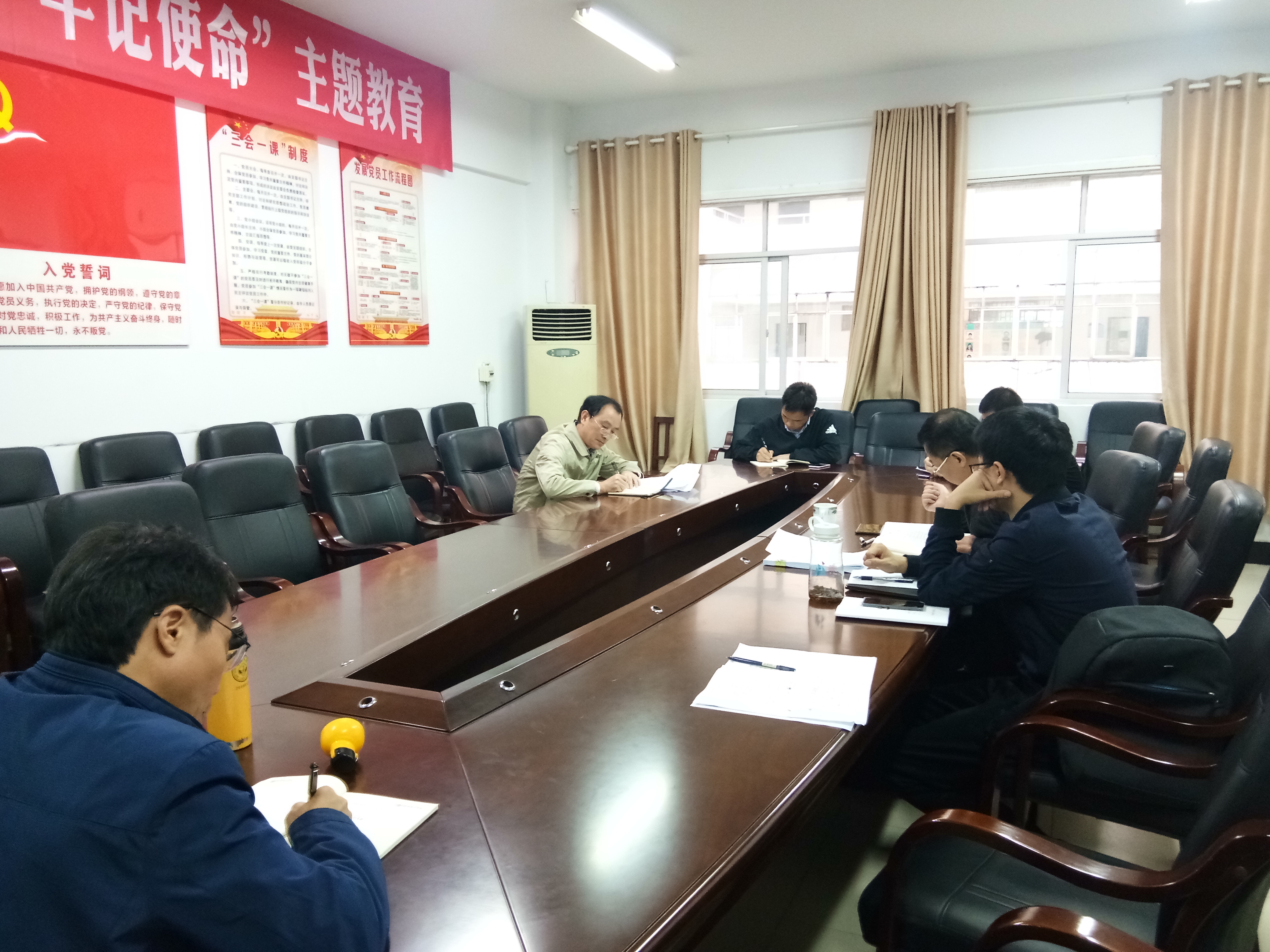 2019年11月12日下午16:30于5306,公司党总支召开扩大会暨支部书记第一次例会。公司党总支书记孙明保,副书记江五元,副书记易政群,总支委员李松华出席会议。全体支部书记参加会议。会议由孙明保同志主持。