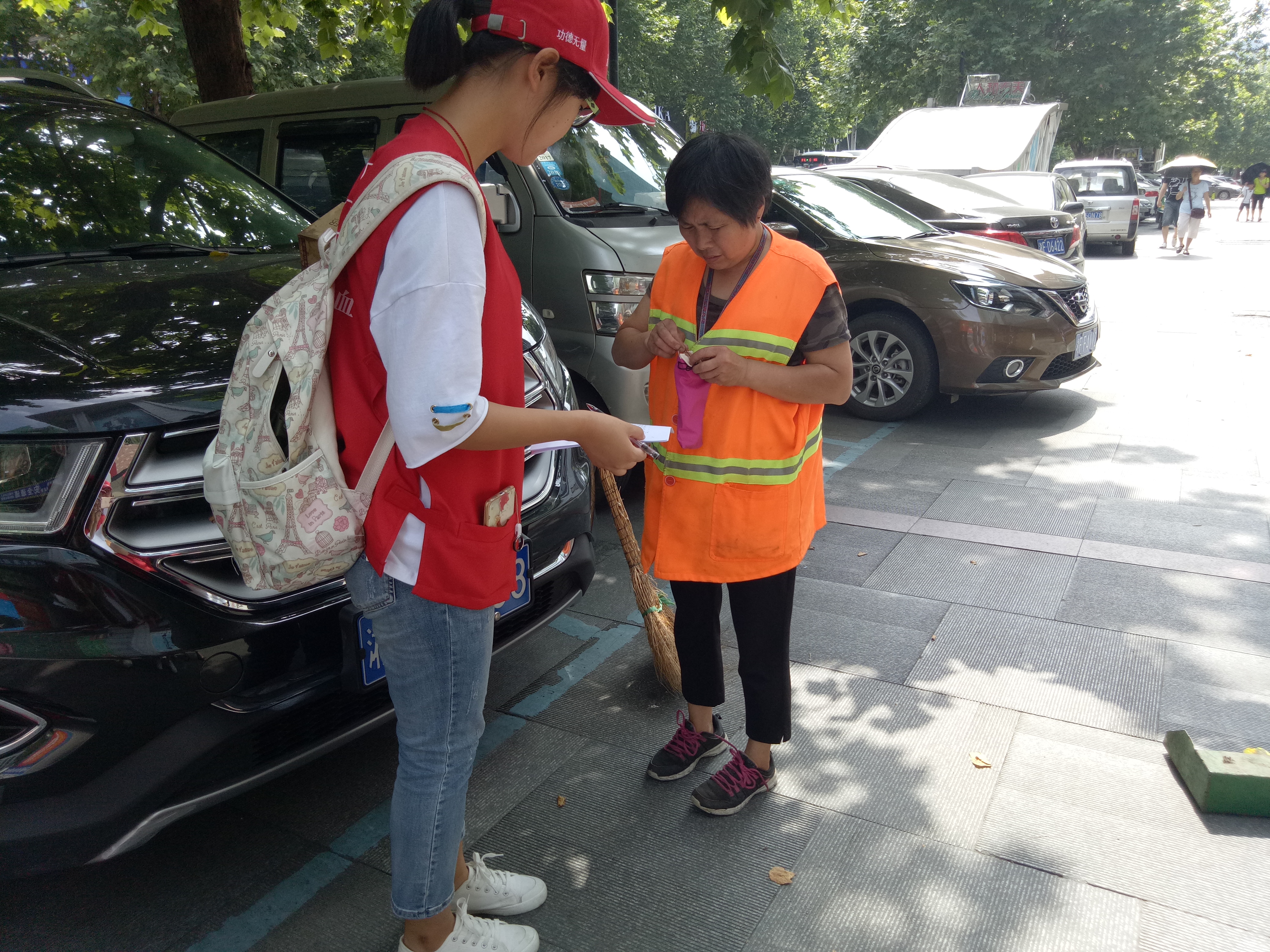 本次宣传地点位于市中心繁华地带,人口流量大,为宣传活动提供了有利的条件;志愿者们头戴小红帽,身披红马甲,耐心的为一位位行人讲解无偿献血的相关知识,用事实打消人们对无偿献血存在的疑虑;他们指出无偿献血不仅能够为他人为社会奉献出自己的爱心,而且科学研究表明适量献血对自身身体也十分有益。